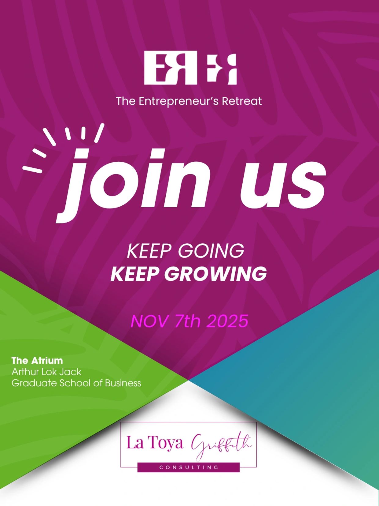 Designed for aspiring and existing entrepreneurs, The Entrepreneur’s Retreat on Friday, November 7th, 2025, is a powerful day to pause, reflect, and refocus under this year’s theme: Keep Going; Keep Growing.